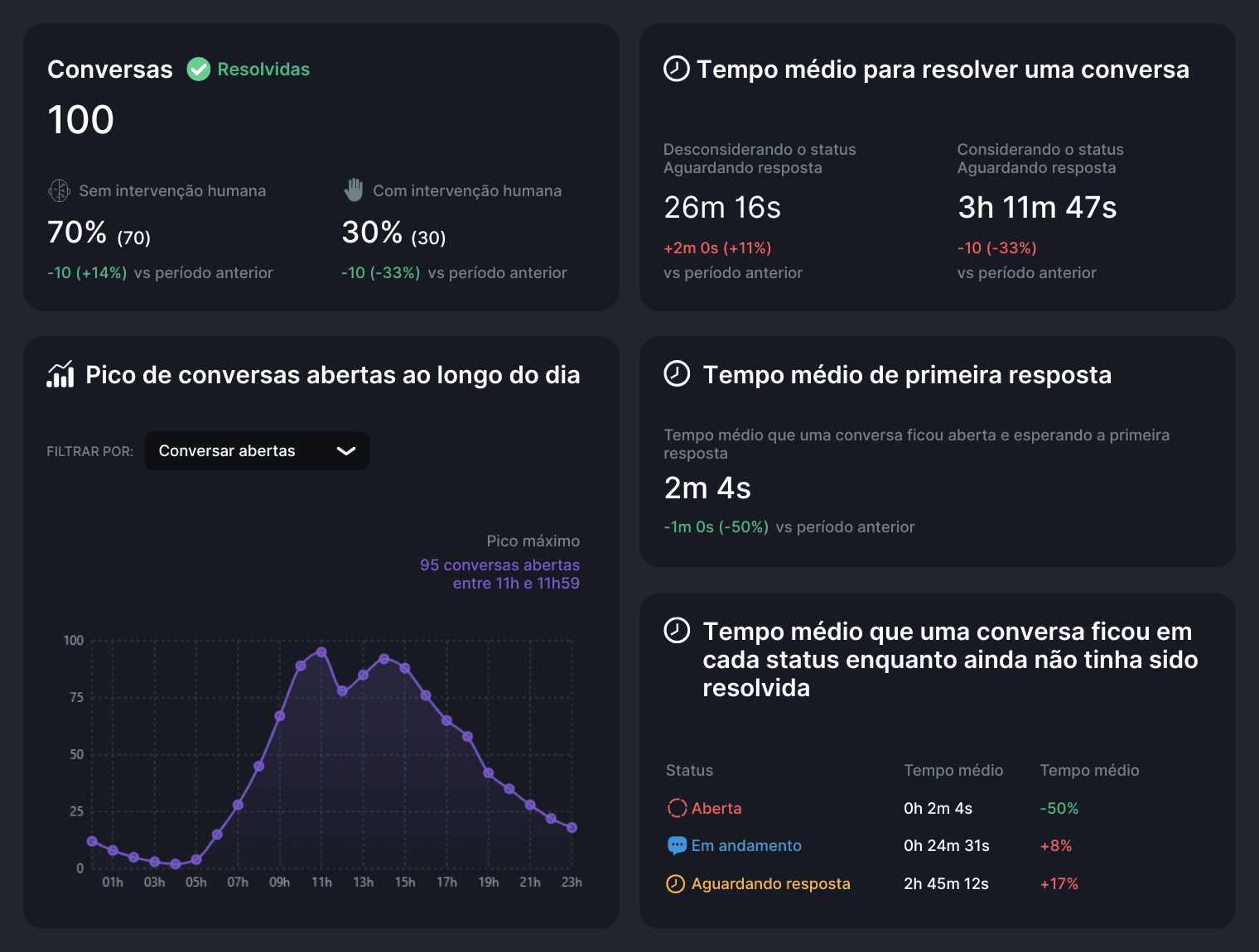 Acompanhe tudo o que seus Super Funcionários IA fazem e como isso impacta seus resultados. Tenha acesso a: